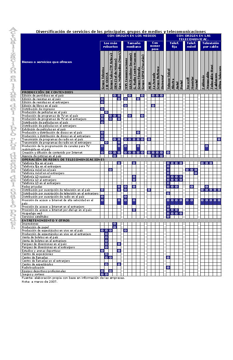 A continuación presentamos una tabla con la diversificación de los servicios que ofrecen las empresas involucradas en el proceso de convergencia.