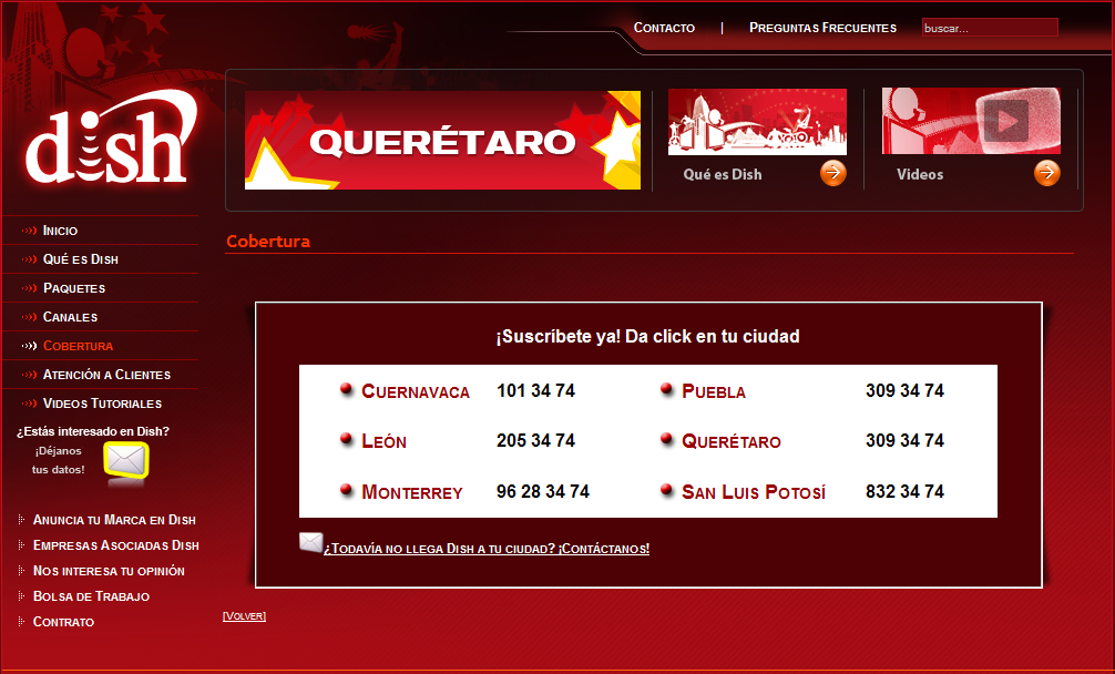 La oferta de televisión de paga de Dish México se ha extendido a nuevas ciudades del país. La empresa que ofrece el servicio de televisión satelital es fruto de la alianza entre la estadounidense Dish Network y la mexicana MVS Comunicaciones y cuenta, además, con el respaldo comercial de Telmex.