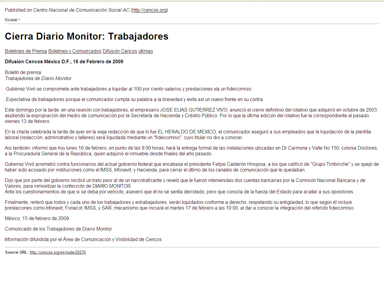 - Lea el comunicado de los trabajadores de Diario Monitor en el sitio de Cencos.