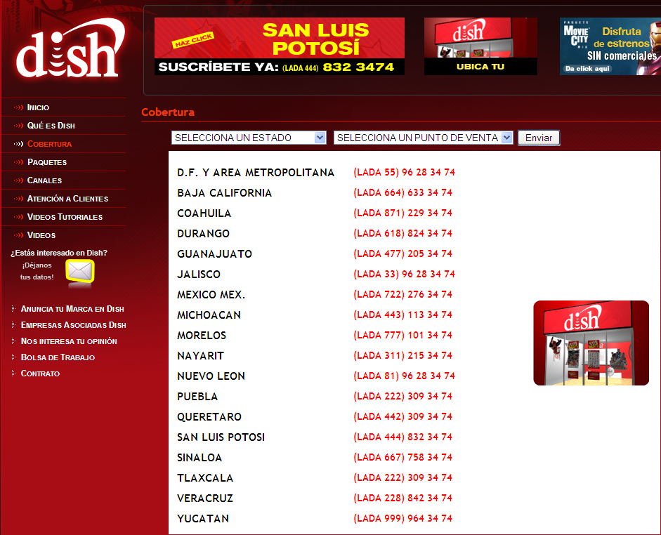 A partir de ahora la red de distribución de este servicio de televisión satelital llega a: Baja California, Coahuila, Durango, Michoacán, Nayarit, Sinaloa, Veracruz y Yucatán.