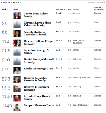 | Joaquín Guzmán Loera | 1,140 | 1.0 | 937 | 1.0 | 701 | 1.0 | Tráfico de drogas. |