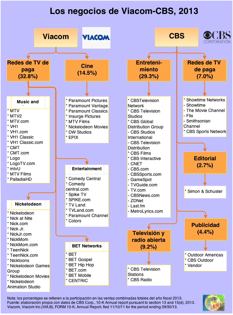 This entry was posted on septiembre 9, 2014 a 12:12 pm and is filed under Archivos del cuarto poder, Diagramas. Etiquetado: "major world media outlets", BET, CBS, CBS outdoor, CMT, Comedy Central, media outlets, MTV, Nickelodeon, Paramount, rueda de la fortuna, Simon & Schuster, vendor, VH1, Viacom. You can follow any responses to this entry through the RSS 2.0 feed. You can leave a response, o trackback from your own site.