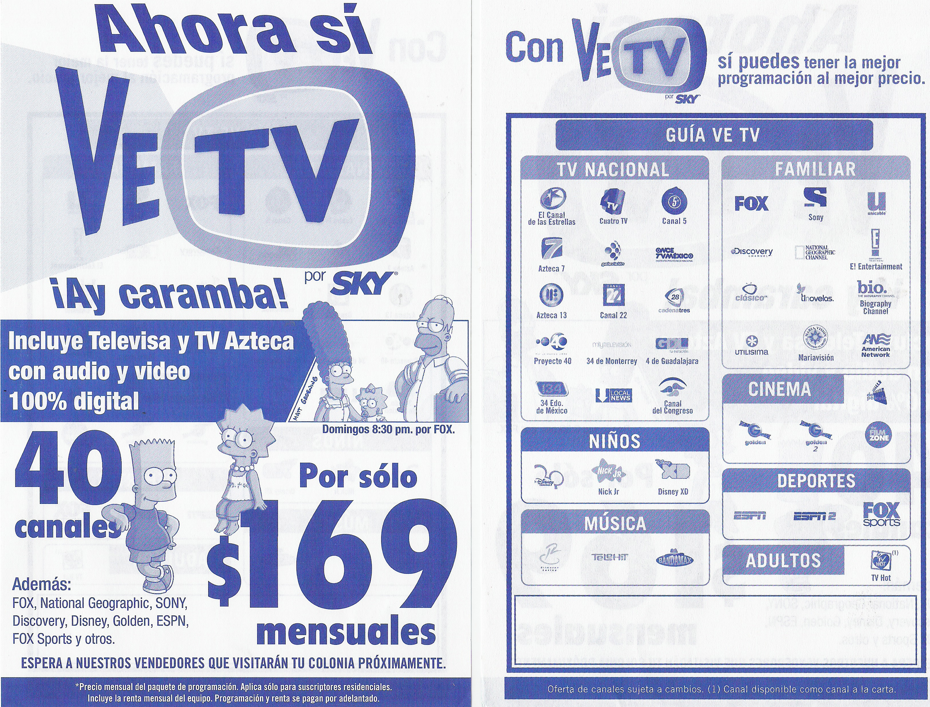 Posted in Datos | Etiquetado: Dish México, Dish Network, MVS, Sky, Televisa, televisión de paga, televisión satelital, Ve TV | 541 Comments »